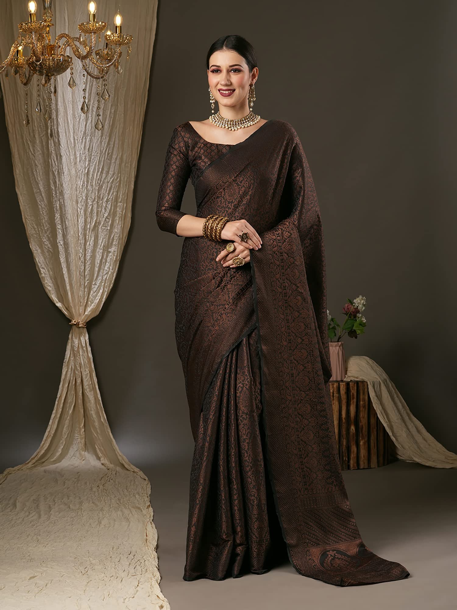 - Color :- Black Sarees for women With Black Unstitched Blouse