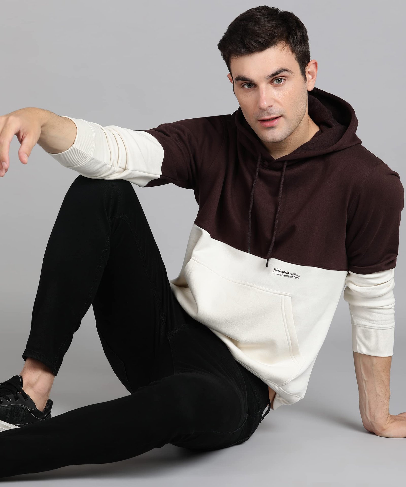 Alan Jones Clothing Men’s Colorblock Cotton Regular Fit Hooded Sweatshirt (Brown_L)