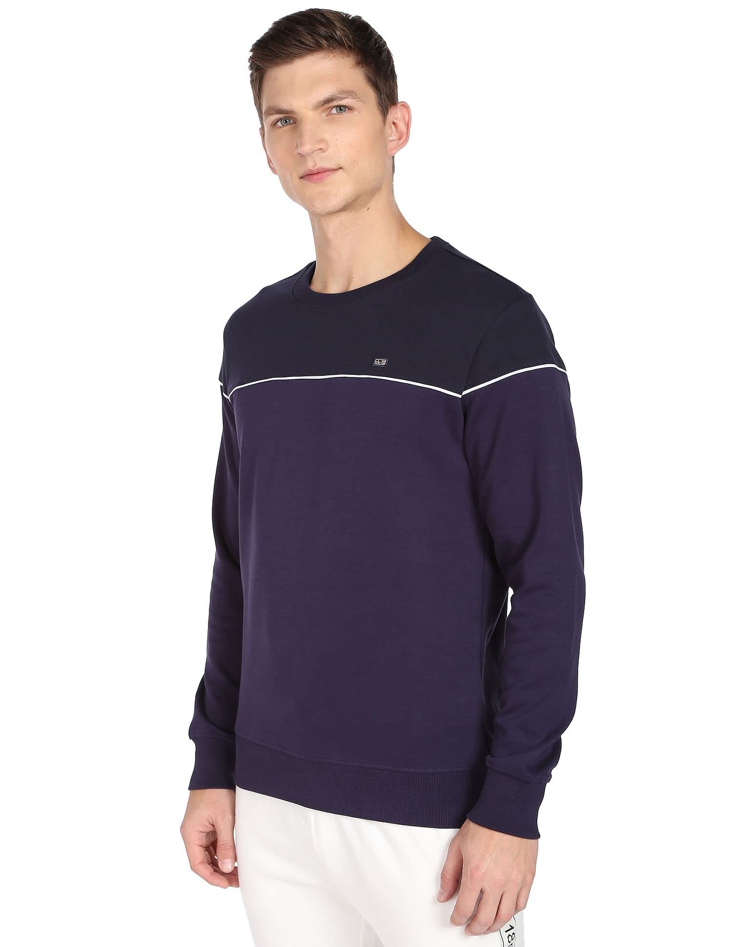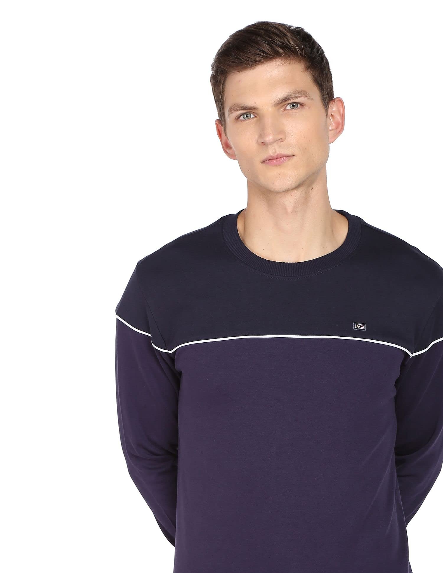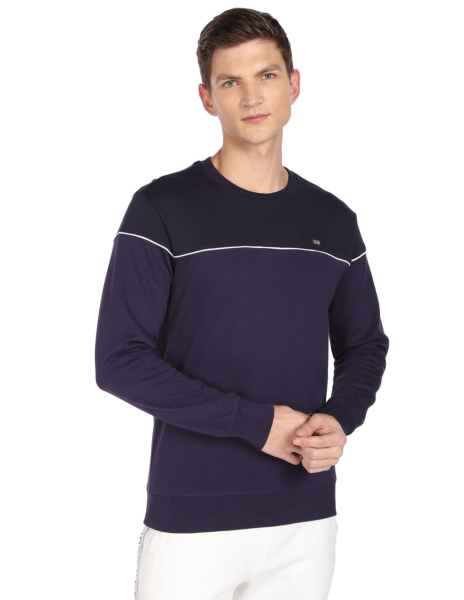 Arrow Men Navy Contrast Piping Crew Neck Cotton Sweatshirt