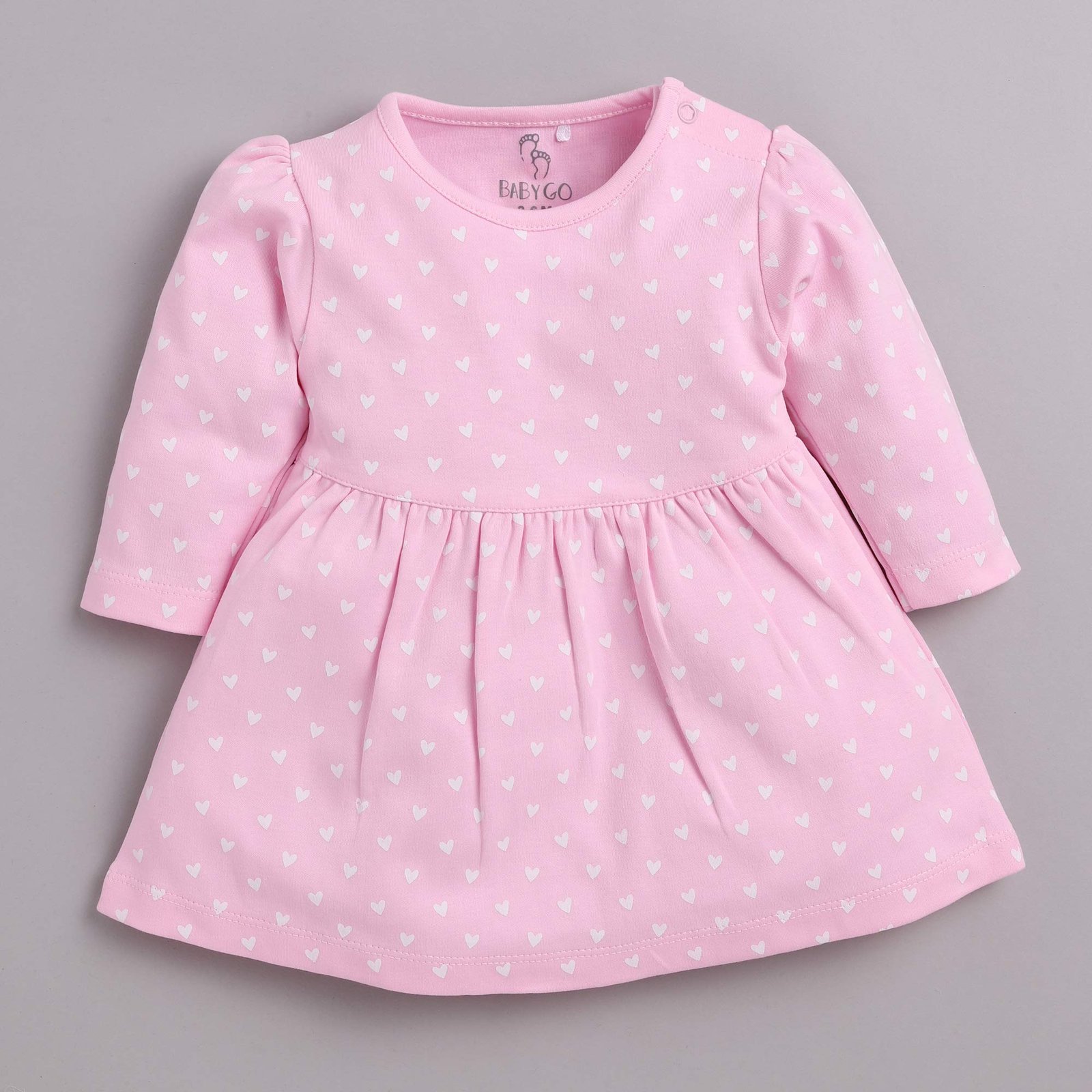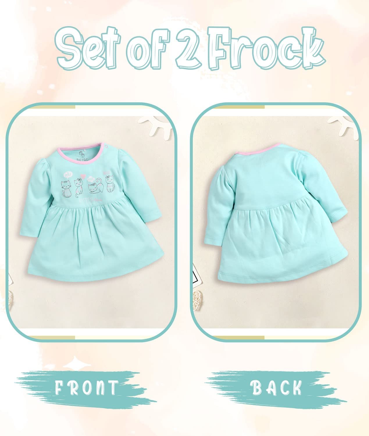 BABY GO Full Sleeve Regular Round Neck A Line Frocks for Baby Girls (Pack of 2)