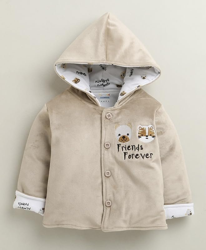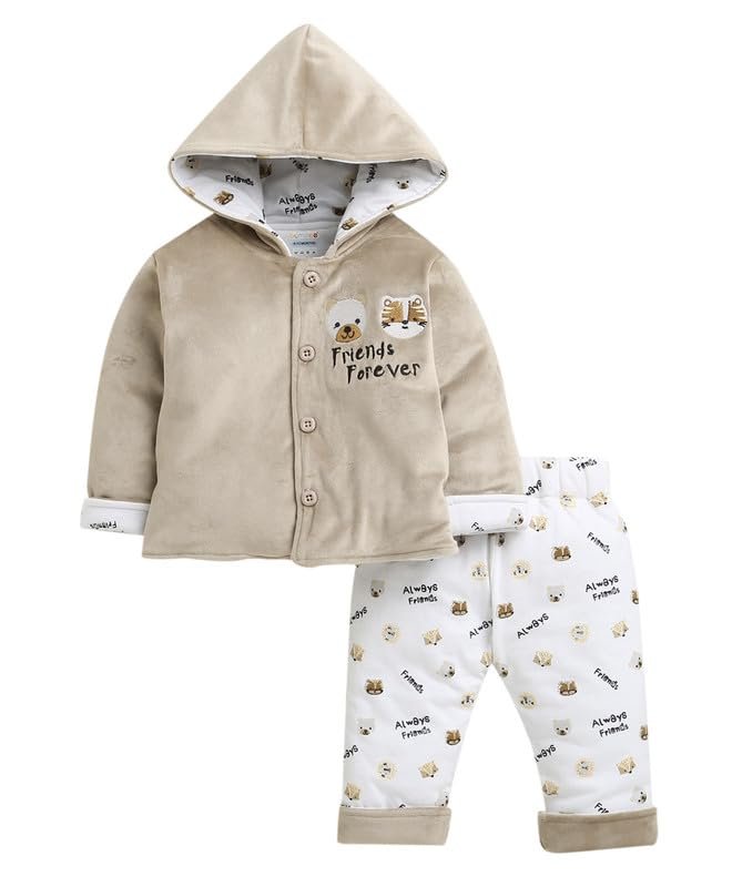 BUMZEE Baby Boys Cotton Regular Fit Winter Set Beige & White – 6-12 Months (Peb10728C-bge)