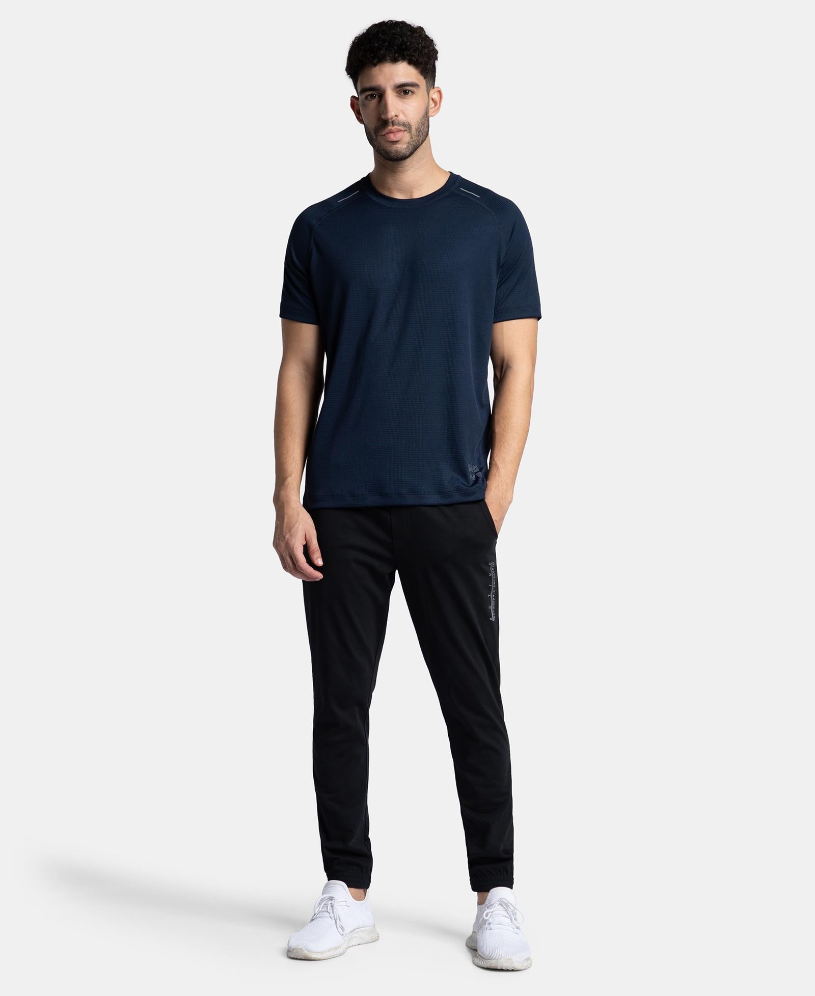Jockey MV16 Mens Lightweight Microfiber Solid Round Neck Half Sleeve T-Shirt with Breathable Mesh_Navy_M