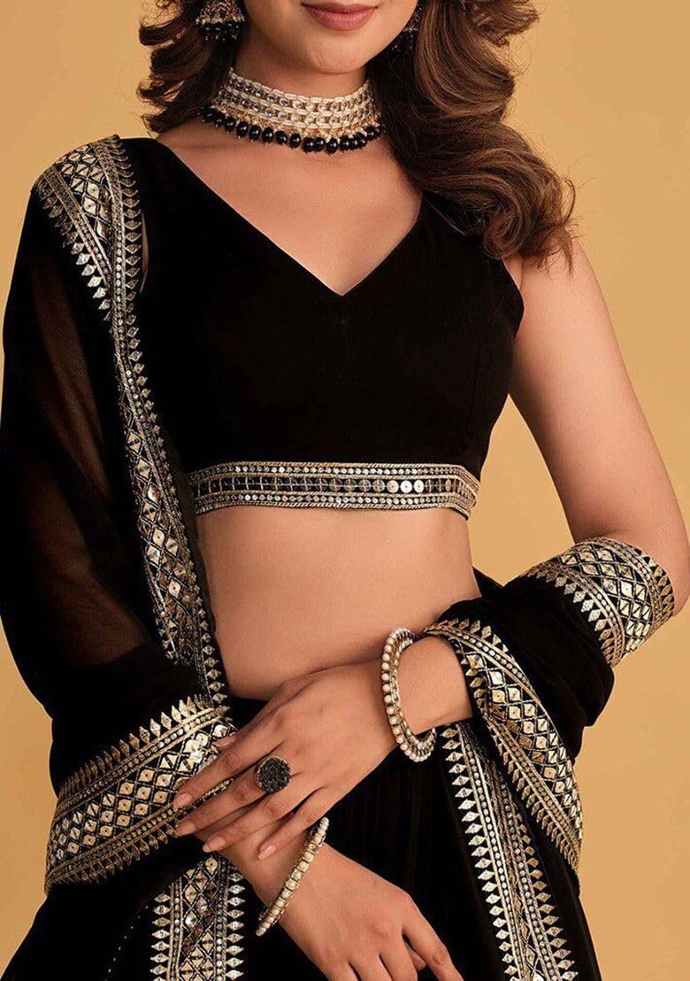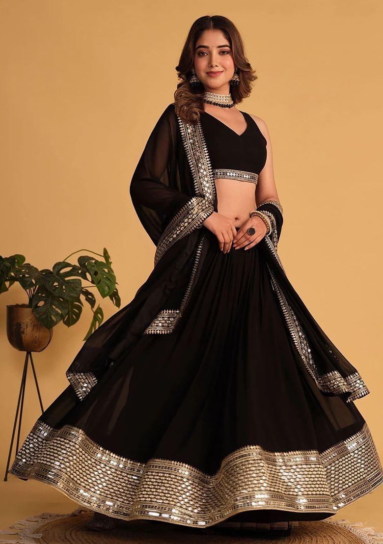 KEDARFAB Women’s Georgette Sequence Embroidered Lehenga Choli Set | Stylish | Party| Lehenga For Women (Black Eid)