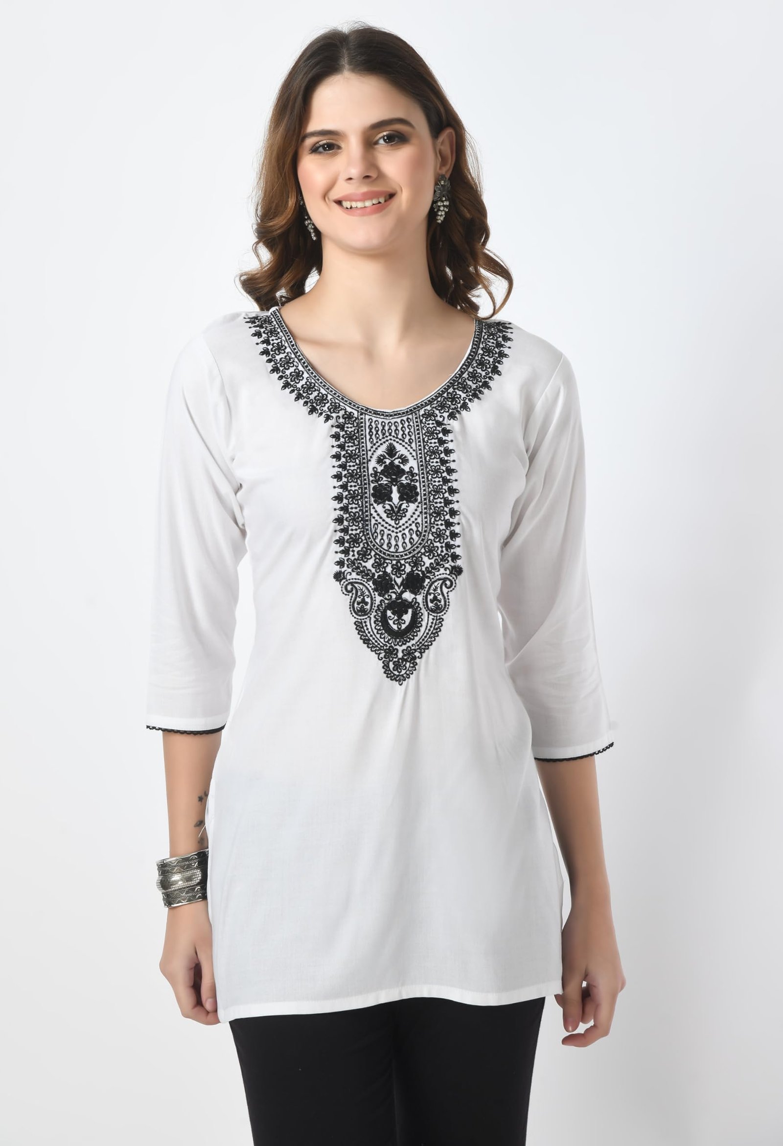 LIBOZA Short Kurti for Women – Lakhnowi Chikankari Embroidered Ladies Kurta, Stylish Girls Top, Ethnic Half Kurtas, Tunic Design Woman Kurtis White