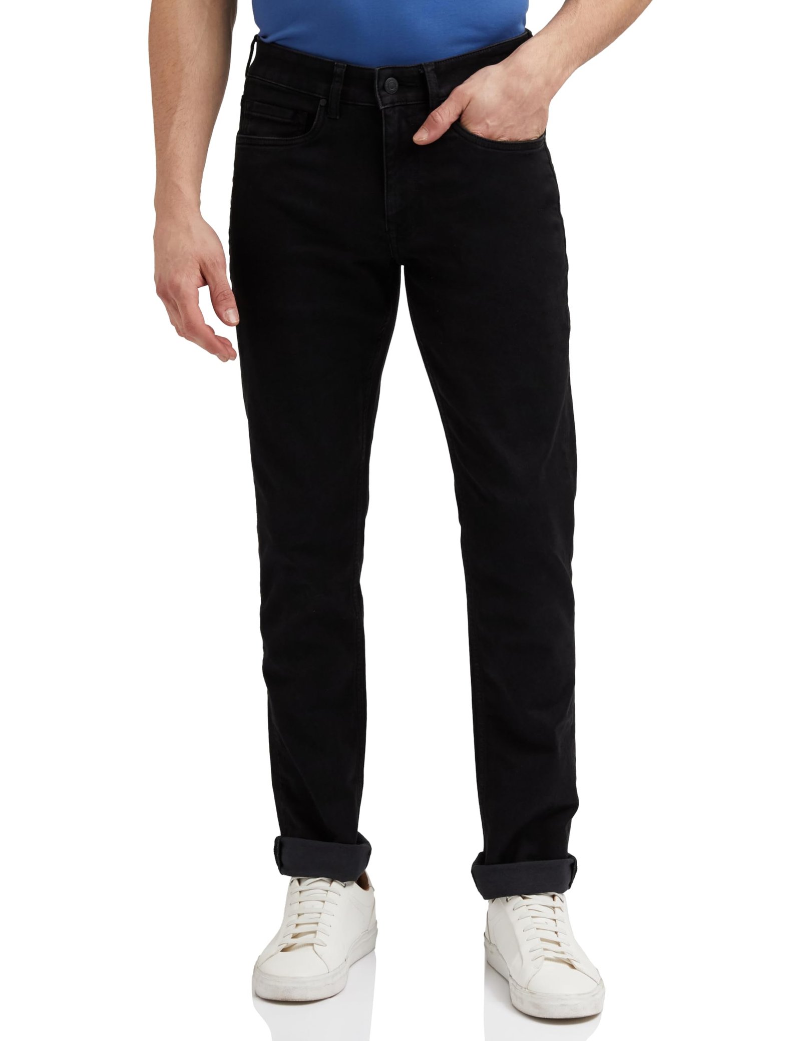 Louis Philippe Men’s Slim Mid Rise Jeans (LRDNCSLPB23779_Black, 34)