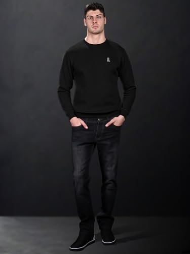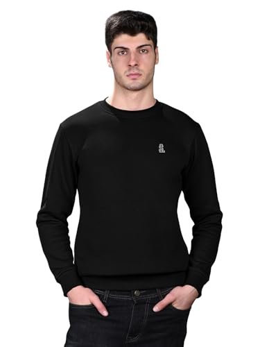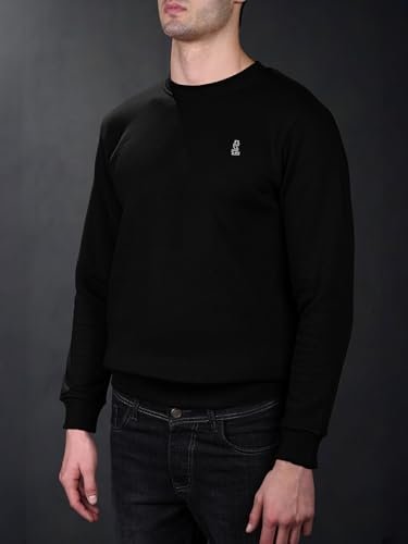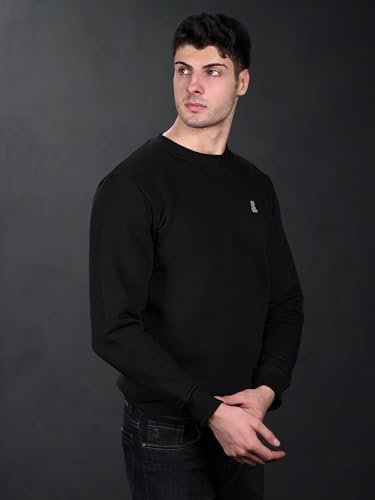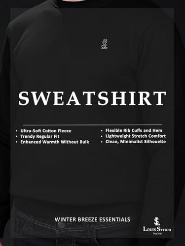 LOUIS STITCH Men’s Signature Logo Printed Black Sweatshirt I Regular Fit Pullover I Roundneck I Sheen Finish Fabric I Premium Casual Wear | LS-SW-RN2 | XL