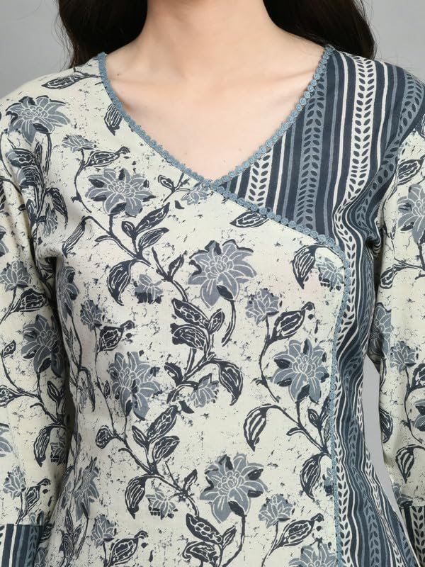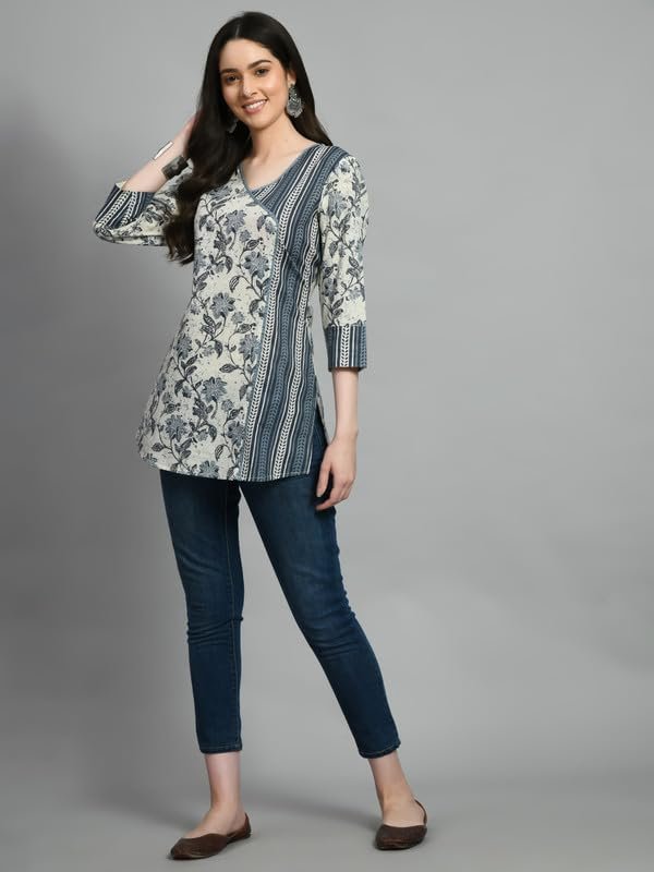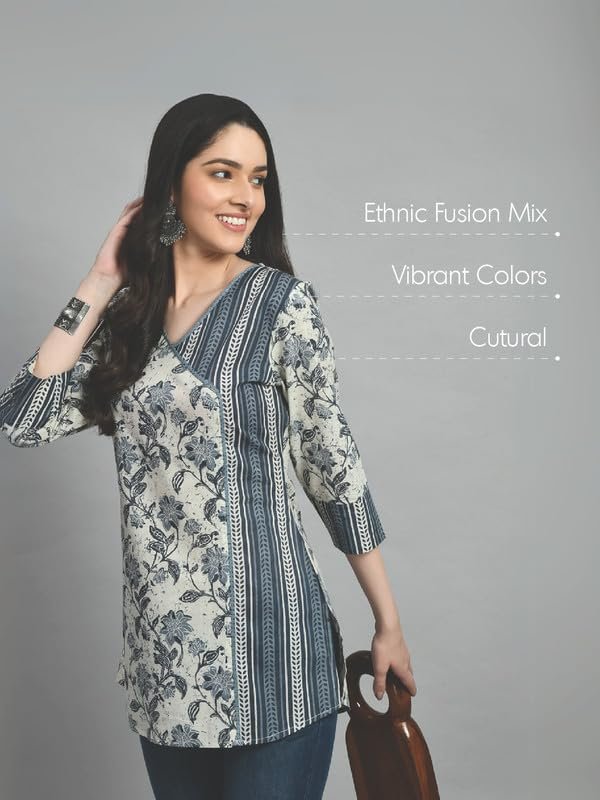 Meesan Women’s Beautiful Grey Cotton Printed Smart Casual Tunics for Office & Casual Wear