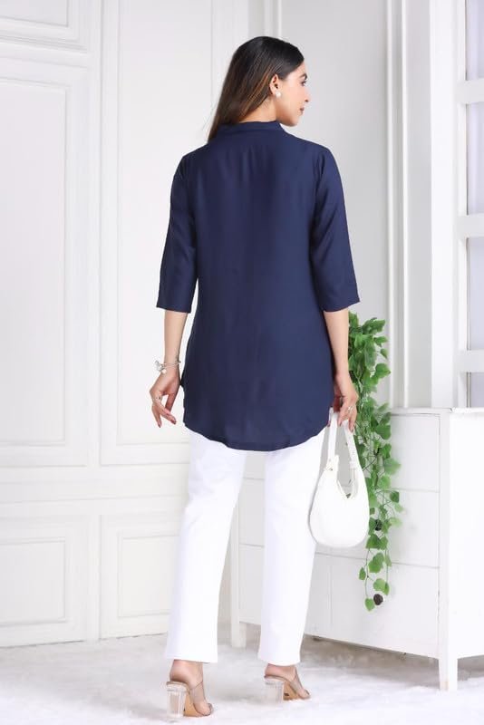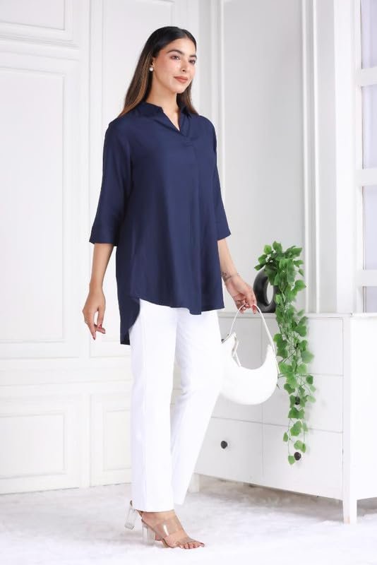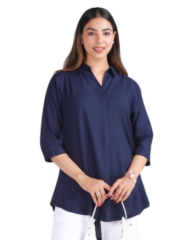 Mlada Rayon Flare Top for Women | Rayon Tunic Tops for Women Western | 3/4th Sleeve Regular Fit and Flare Top | Women Office Tops Tunic | Western Long Shirt Top for Women | Shirt Collar Top for Women
