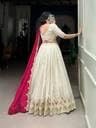Suppar Sleave Women’s Vichitra Silk Embroidered Semi Stitched Lehenga Choli With Dupatta (White)