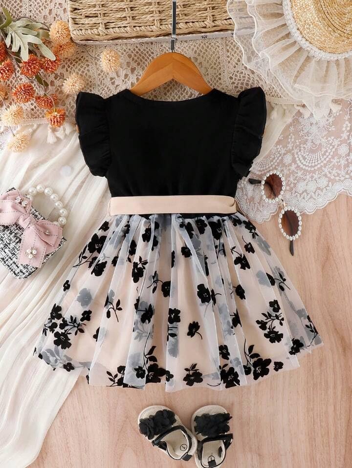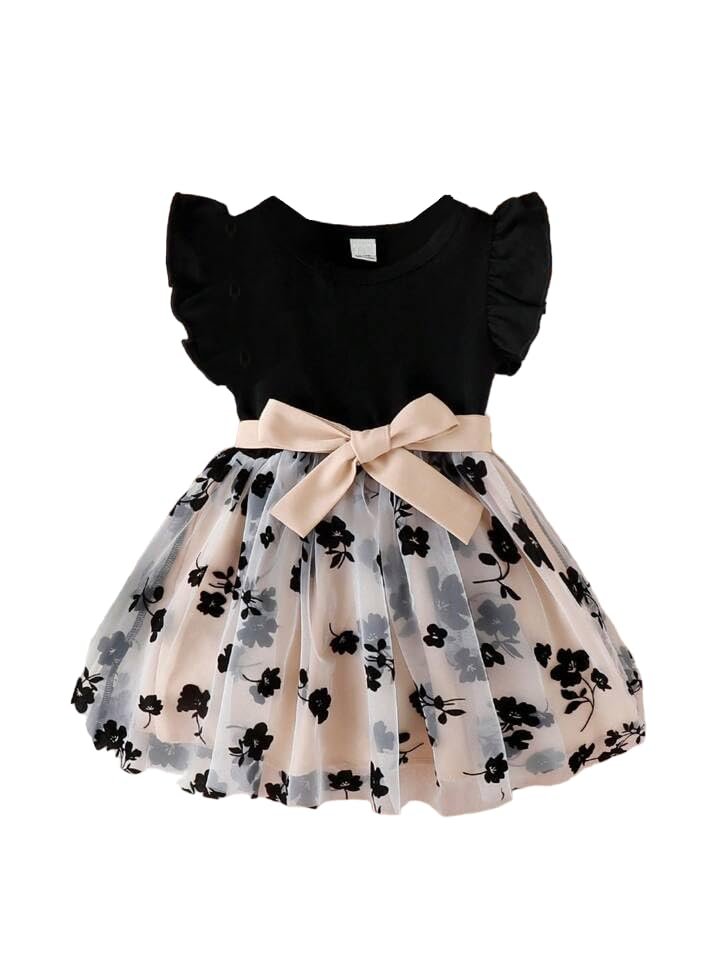 TAGAS Toddler Girls Floral Print A-line Dress for Girls | Frock for Girl |Dresses birthdaydress for Babygirls| Cream