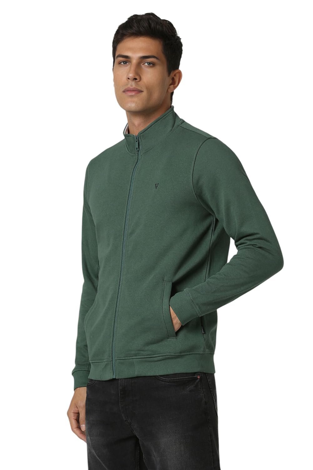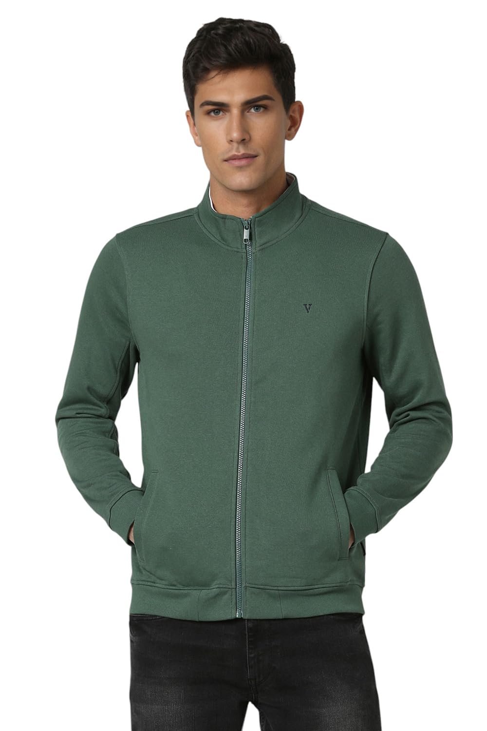 Van Heusen Men Green Textured Round Neck Sweatshirt