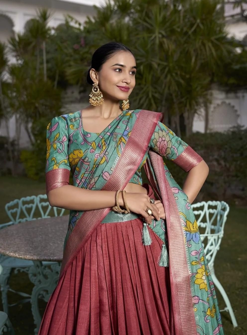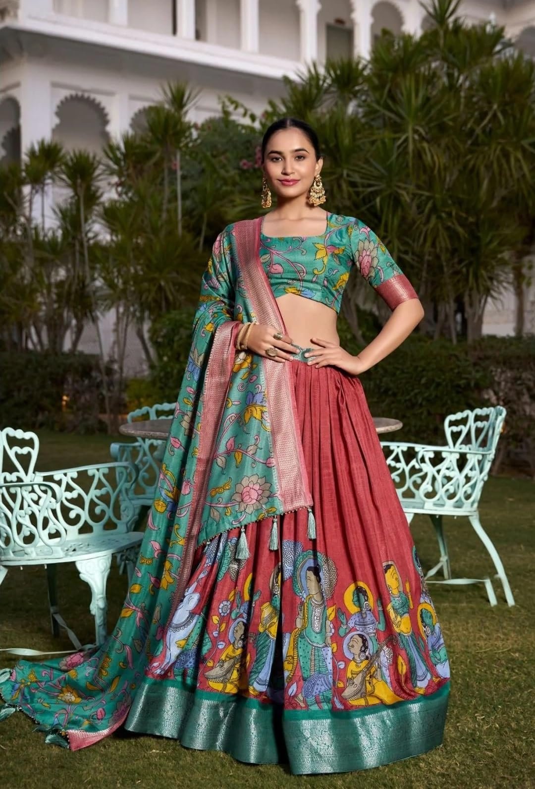 - Lehenga Fabric : Tussar Silk, Blouse fabric : Tussar Silk, Dupatta fabric : Tussar Silk.